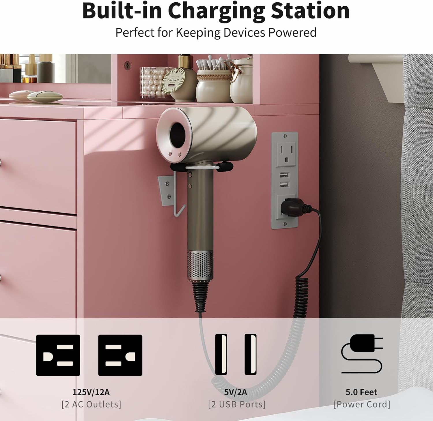 - 3 Lighting Modes & Brightness Adjustable: The vanity desk is equipped with an HD mirror and 10 bright Hollywood plastic bulbs, provides 3 color modes (warm/natural/cool) and adjustable brightness. This makeup vanity can meet all your different needs, perfect for home makeup, salon, and live broadcast., so you can experience the star-like makeup treatment