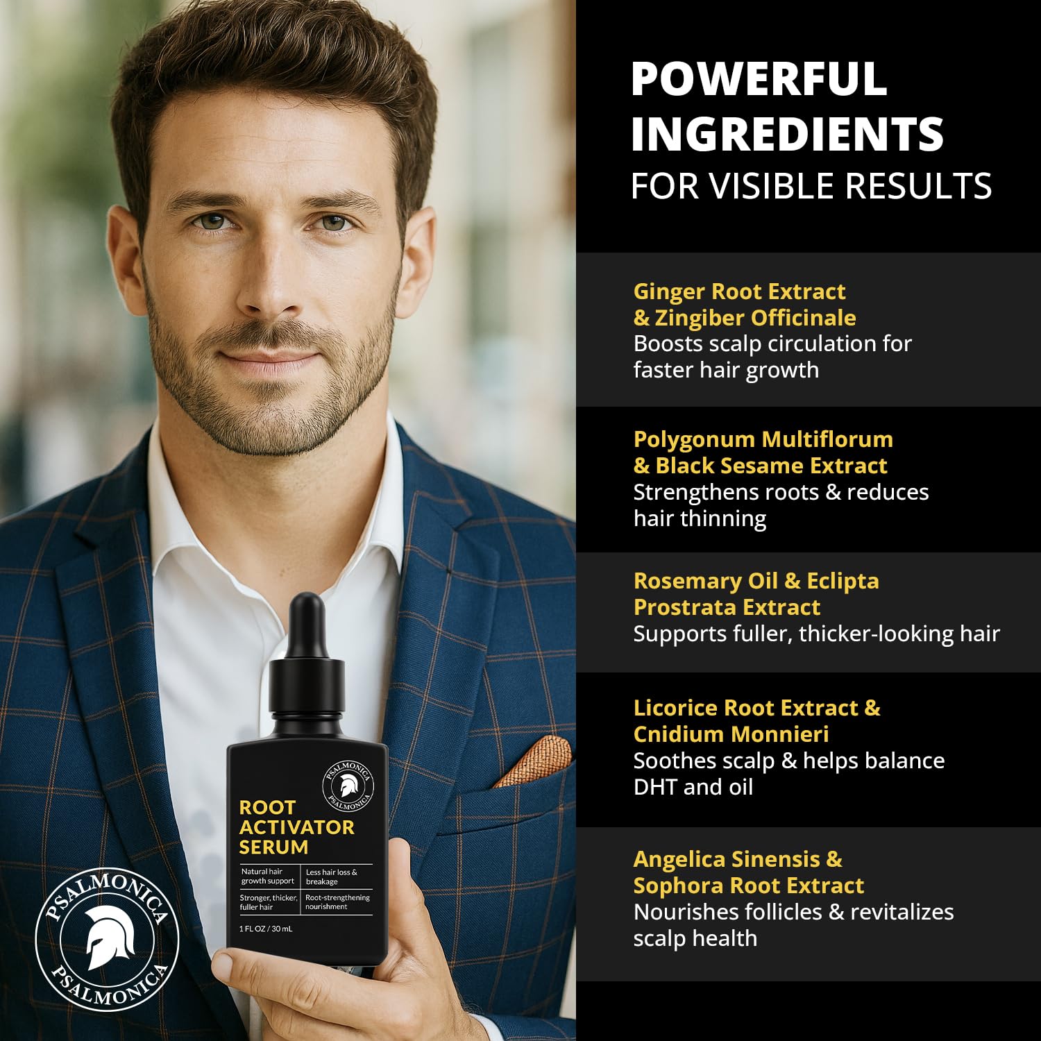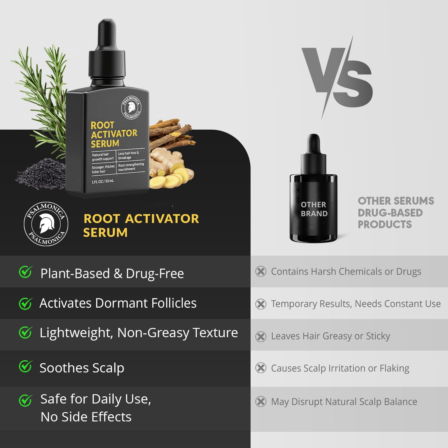 • ✅ Formula Inspired by Root Activator Shampoo – This upgraded hair growth serum blends herbal extracts like rosemary, ginger, and black sesame to nourish the scalp and support visible regrowth.